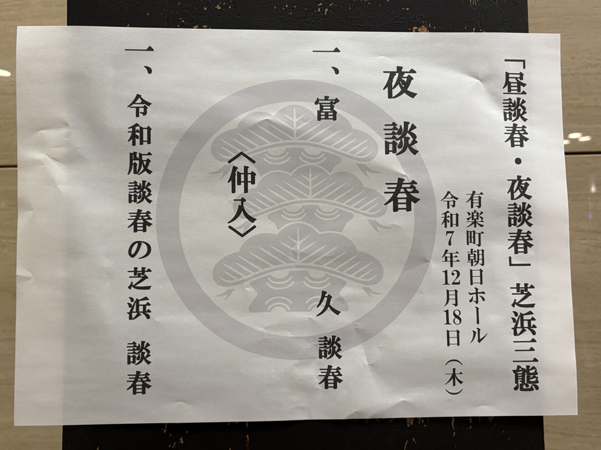 昨日は有楽町朝日ホールで立川談春の高座でした。談春を見るのは5年ぶりぐらい。